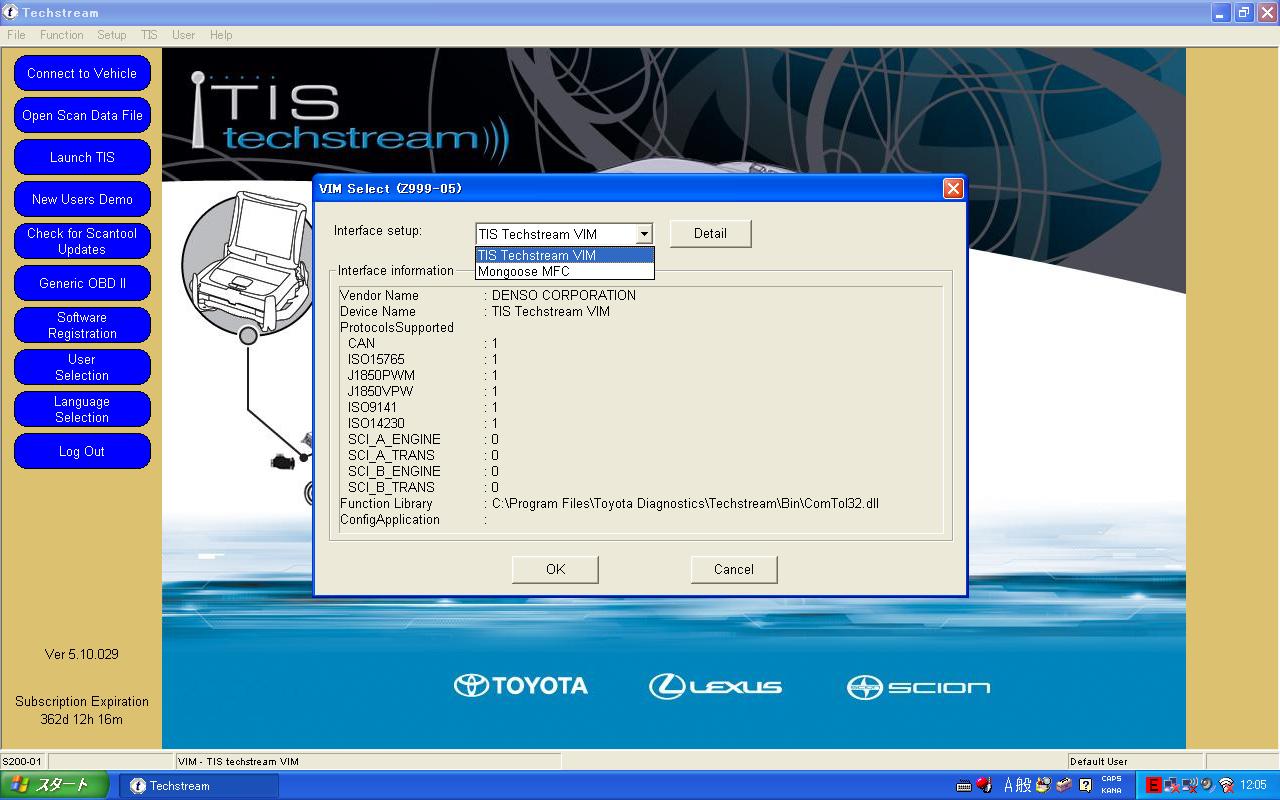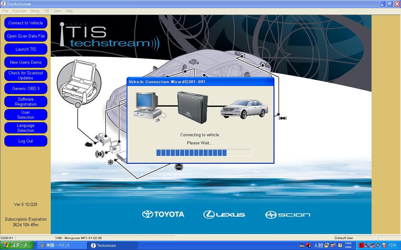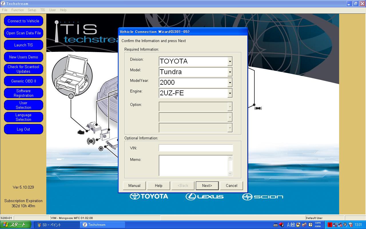 さて、Mongoose MFCを使って、MY2000TUNDRAをスキャンしてみました。 使用方法は非常に簡単。 DLCへMonngoseを接続。