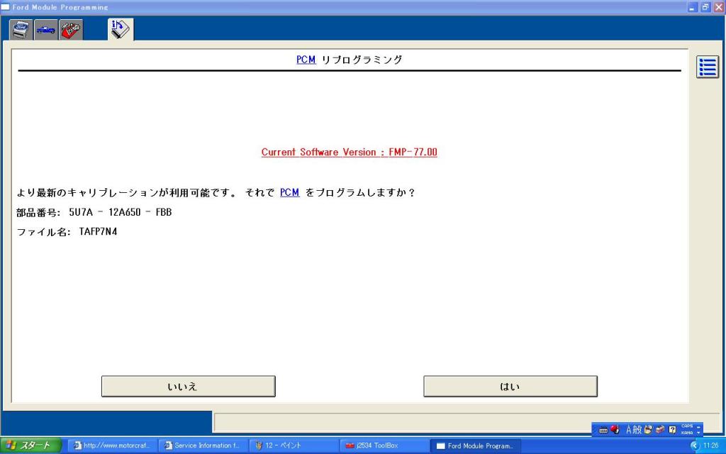 PCにインストールしてある、Fordのオンラインリプロ用プログラムを起動します。