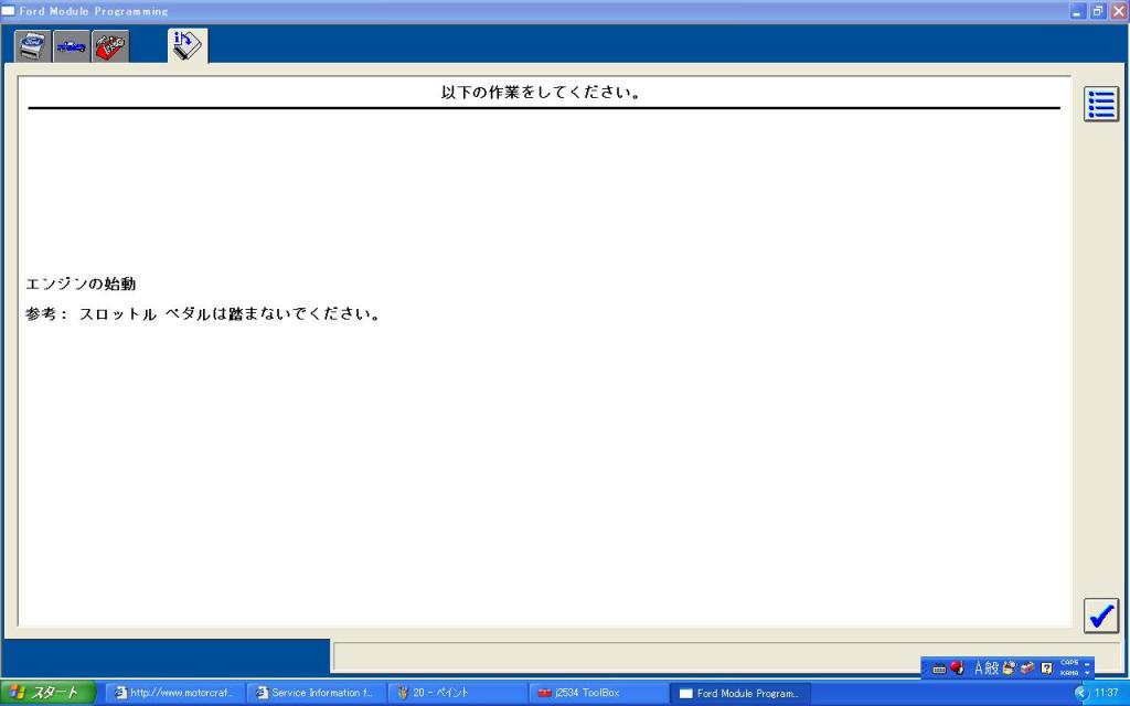 途中、イグニッションをオンにしたりオフにしたり繰り返しながら淡々と進めるという感じです。