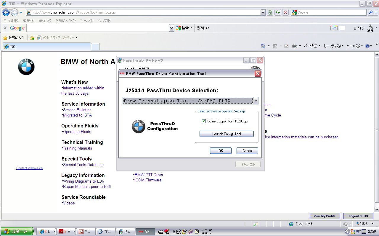 BMW PTTのインストール後、J2534ツールとしてCarDAQ-Plusを選択します。