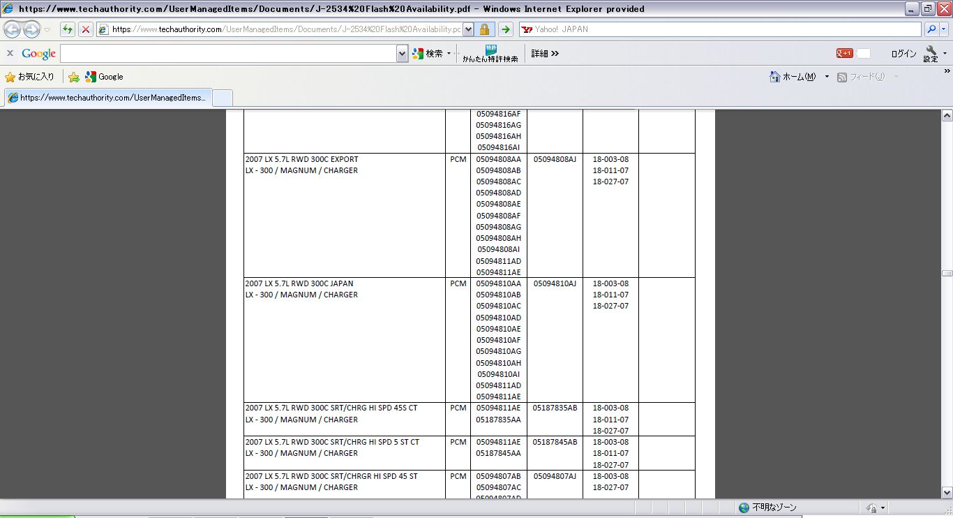 1.TechauthorityのページからJ2534 Flash Availavilityを開きます。