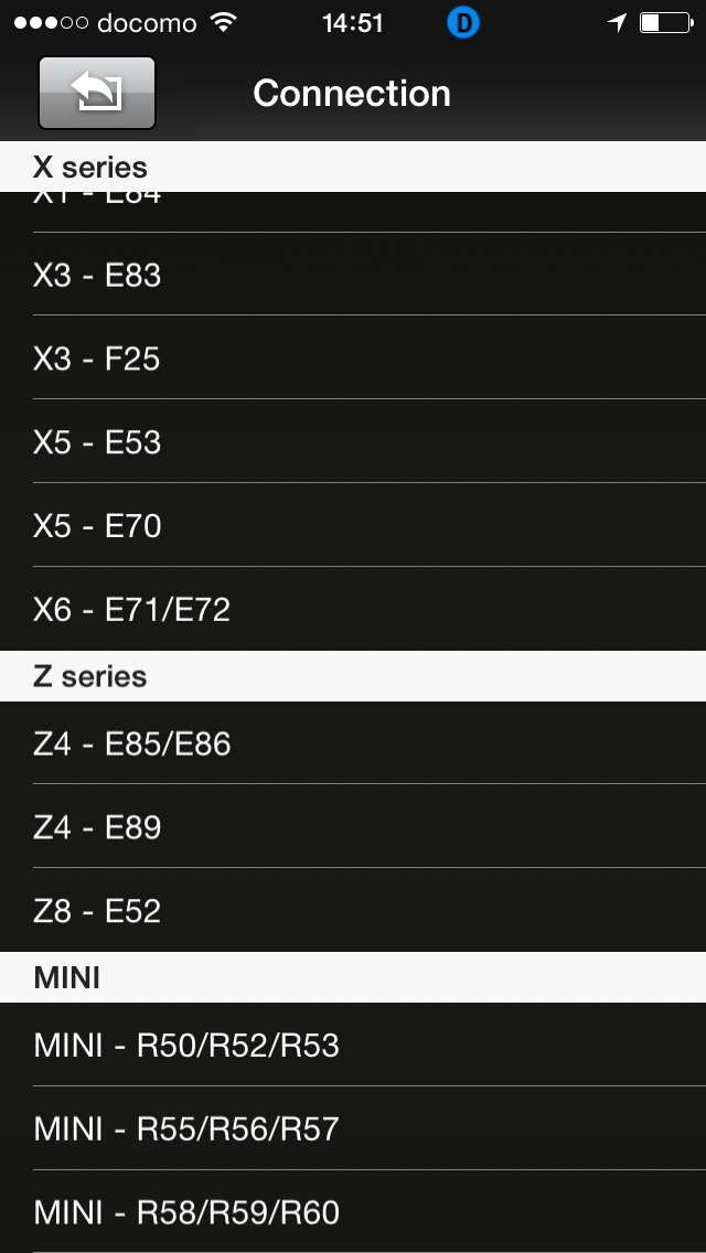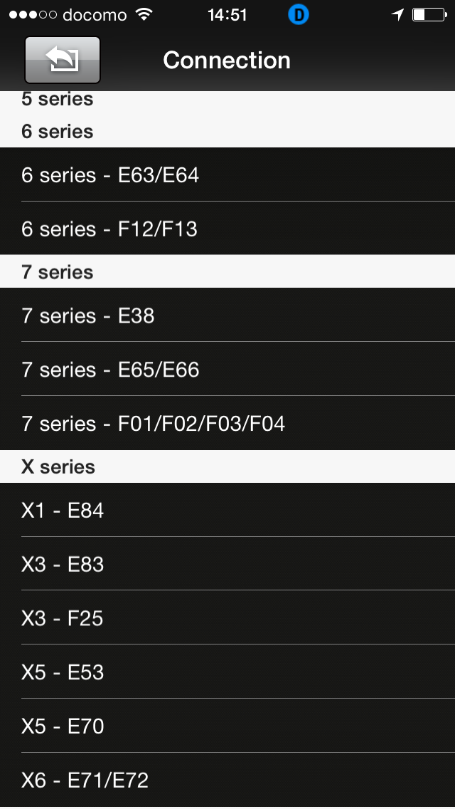 BMWの追加コードを購入すると以下の車種の特殊コードを見に行けます。