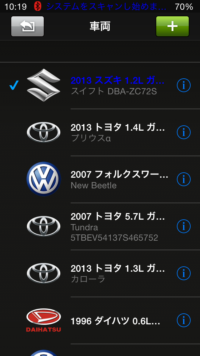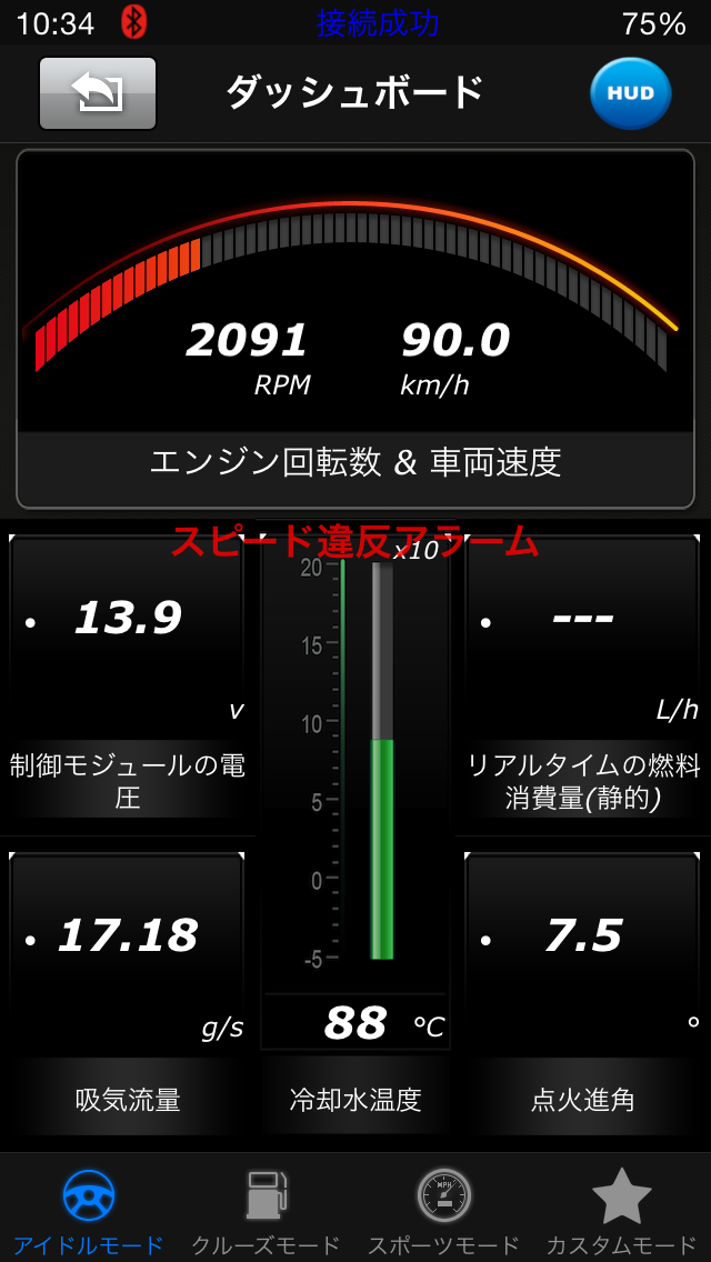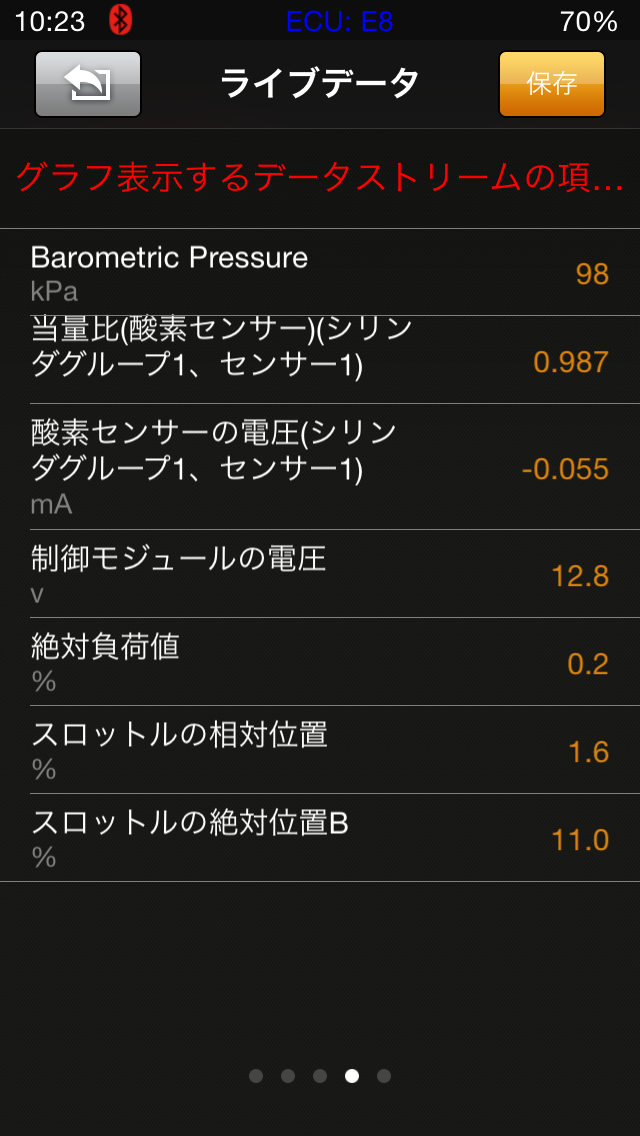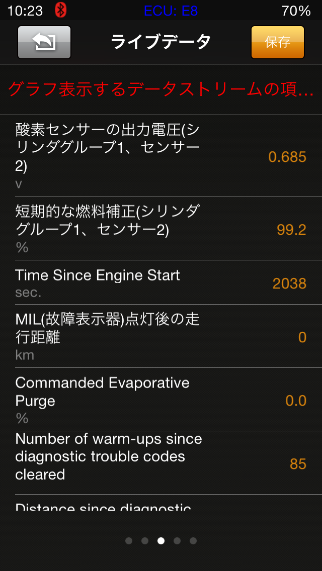 iOBD2は日本語表示なのですが、デフォルトは英語です。