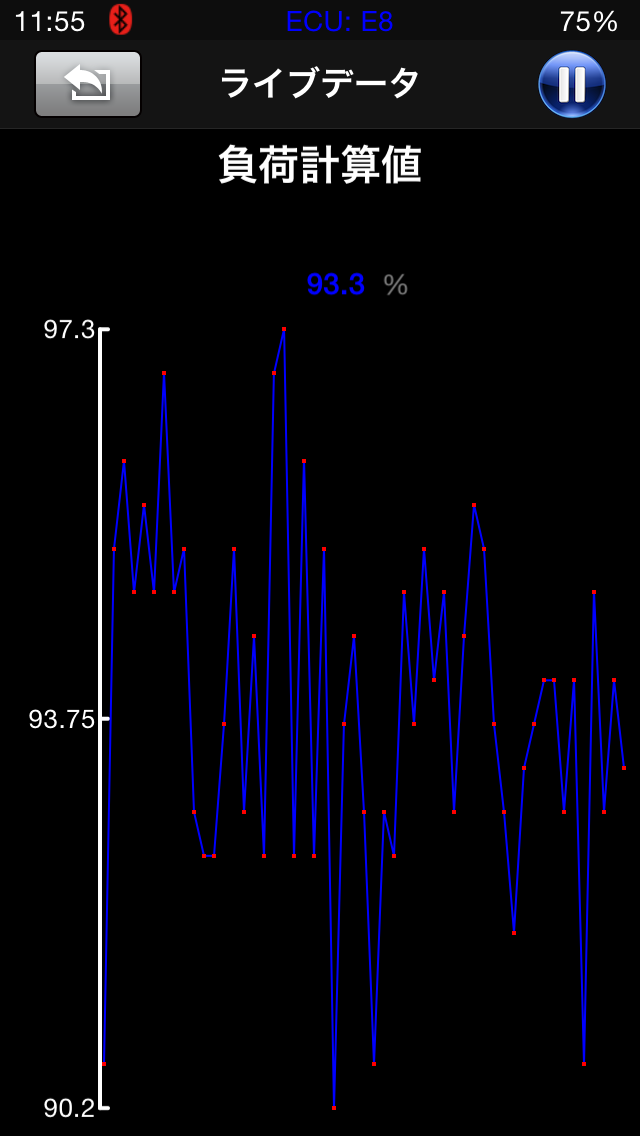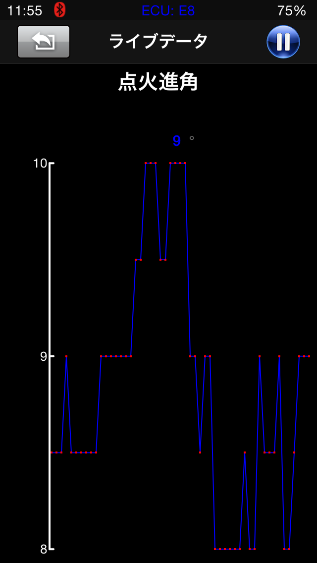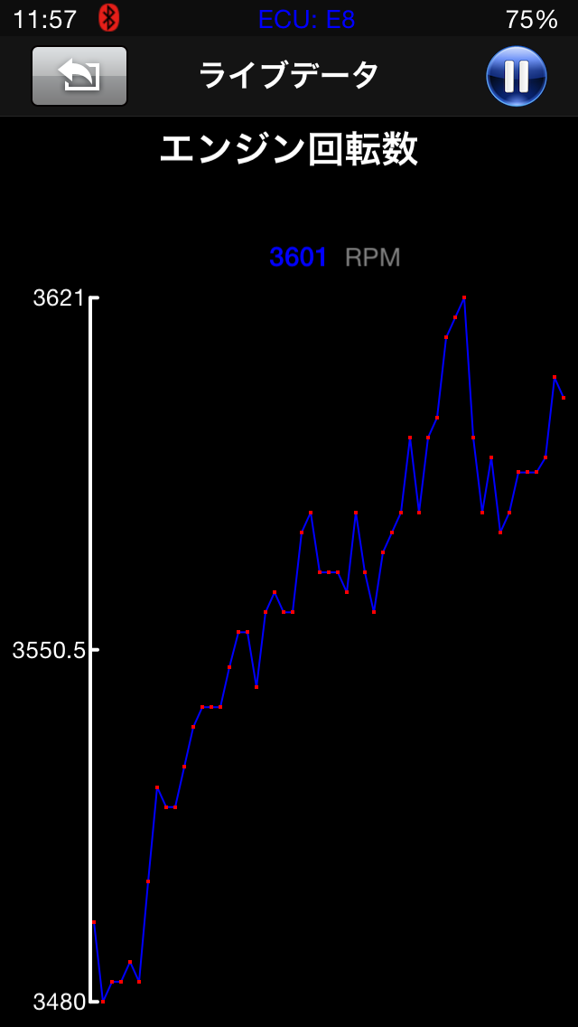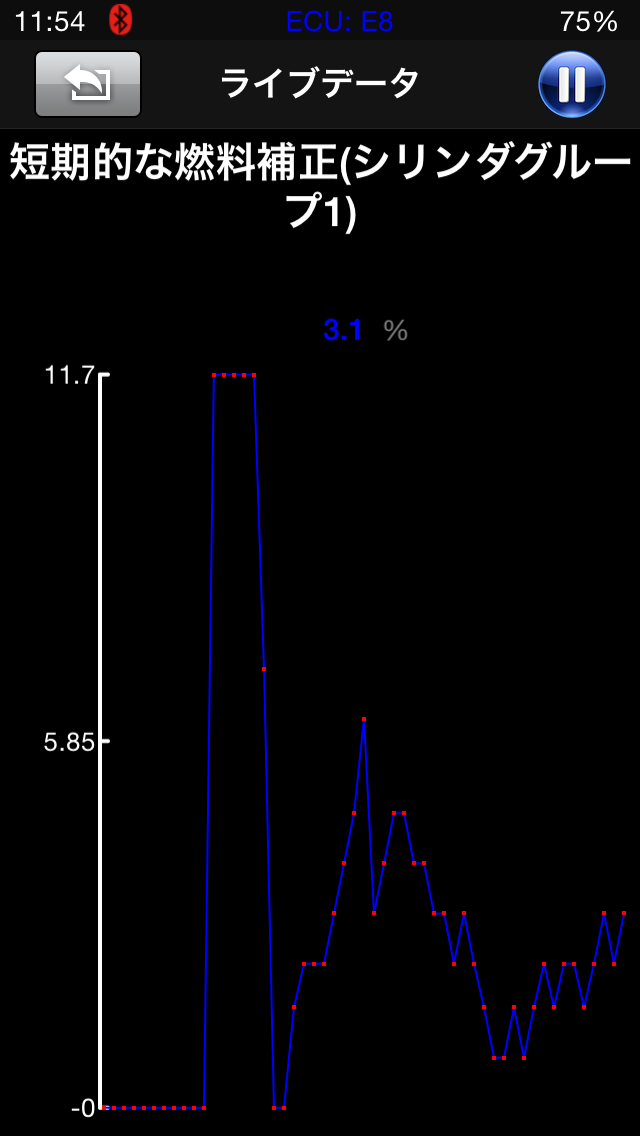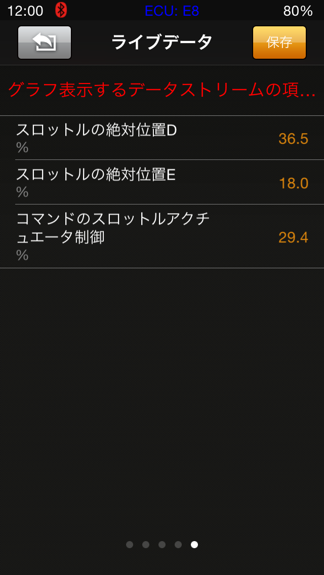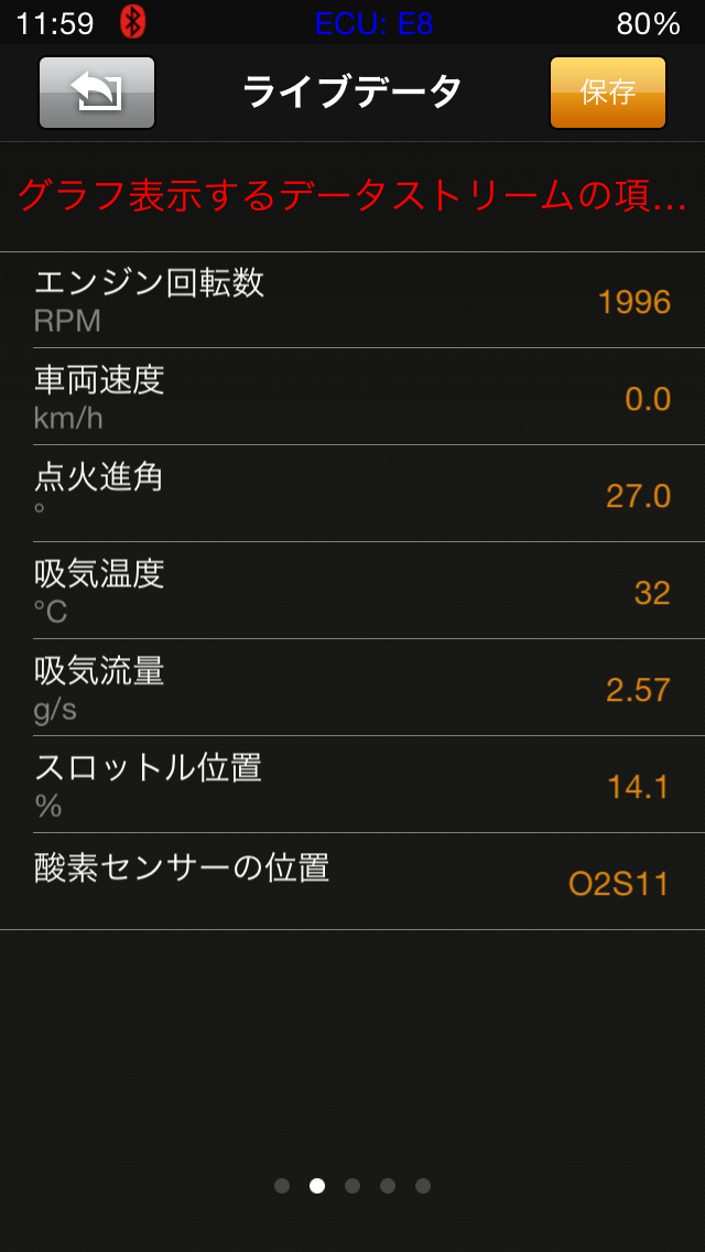 ライブデータのグラフ表示はライブデータを選択したあと項目をタップします。