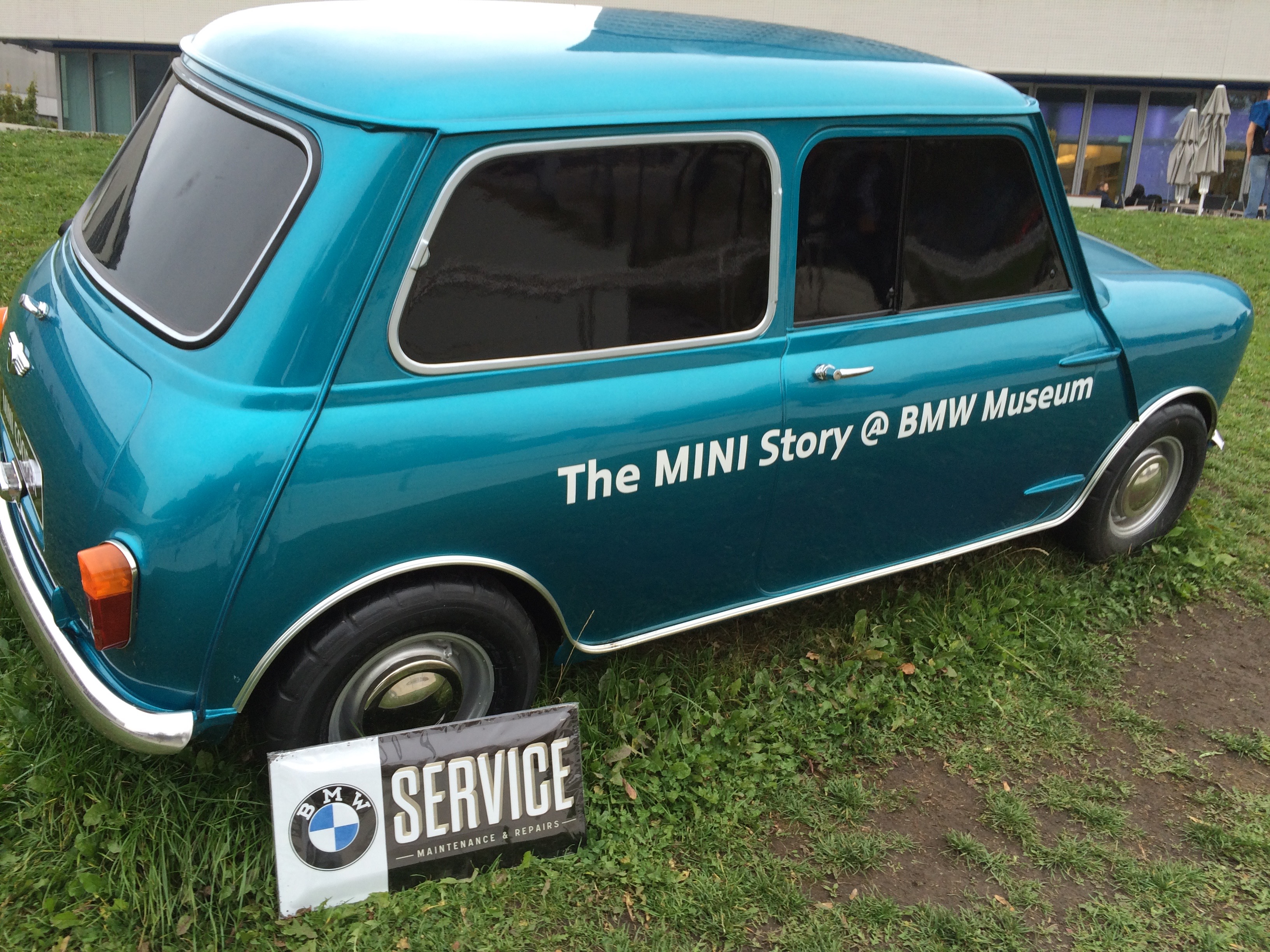 *ミニの後輪に立てかけてあるレトロなメタルプレートです。