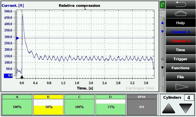 相対的な試験で、最も良好なシリンダに対してパーセンテージで表されるシリンダ圧縮の相対差のみを示します。