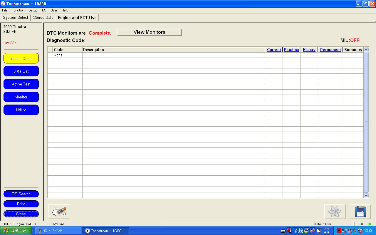 さて、Mongoose MFCを使って、MY2000TUNDRAをスキャンしてみました。 使用方法は非常に簡単。 DLCへMonngoseを接続。