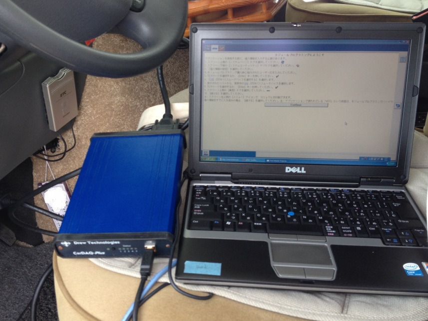 CarDAQ-PCを持ち込んでの作業です。