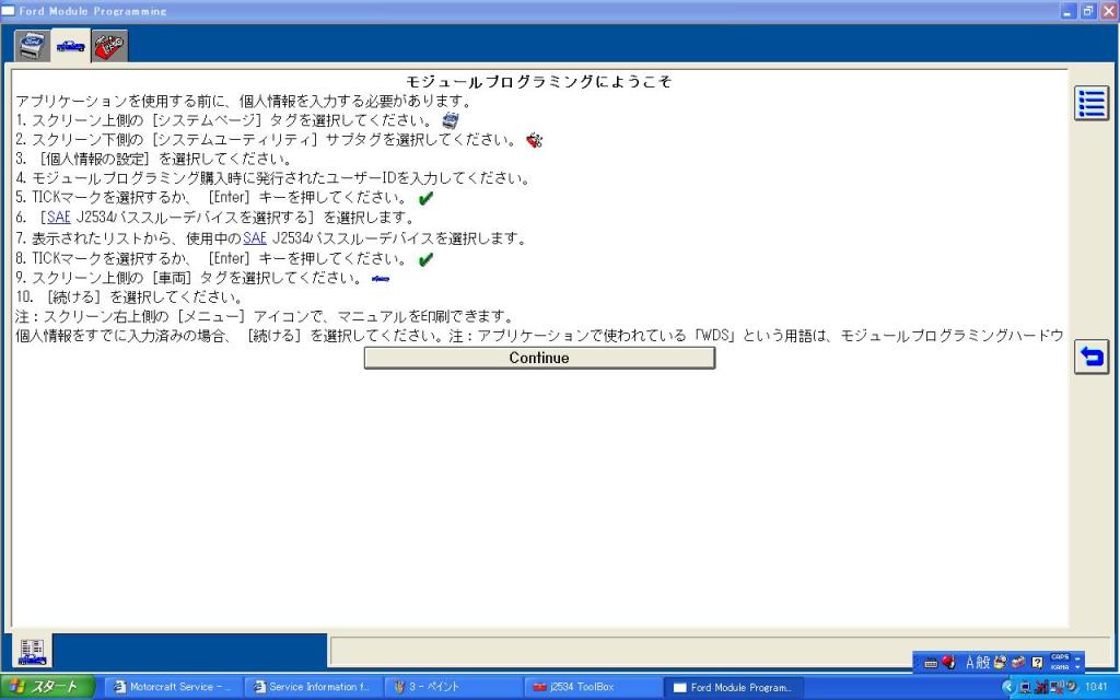 PCにインストールしてある、Fordのオンラインリプロ用プログラムを起動します。